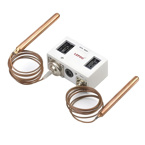 TSD型溫差控制器是根據(jù)兩個(gè)感溫包感受溫度差值與設(shè)定值比較,給出一個(gè)差值信號(hào)使溫度控制器動(dòng)作。在通風(fēng)設(shè)備和制冷裝置中,需要保持兩股介質(zhì)之間的溫差為某一個(gè)恒定值時(shí),可采用溫差控制器來(lái)實(shí)現(xiàn)。兩個(gè)相對(duì)的感溫包,一個(gè)用來(lái)作為溫度參考,另一個(gè)則用作控制發(fā)信號(hào),而溫差則是直接的受控參數(shù)。