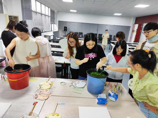 活動當(dāng)天,同事們滿懷熱情的齊聚公司二樓培訓(xùn)室,共同沉浸在柒扇制作的世界中。從選材、設(shè)計到上色等,每一步都凝聚著大家的專注與匠心?,F(xiàn)場氣氛熱烈而溫馨,歡聲笑語中,一幅幅精美的柒扇作品逐漸呈現(xiàn)。