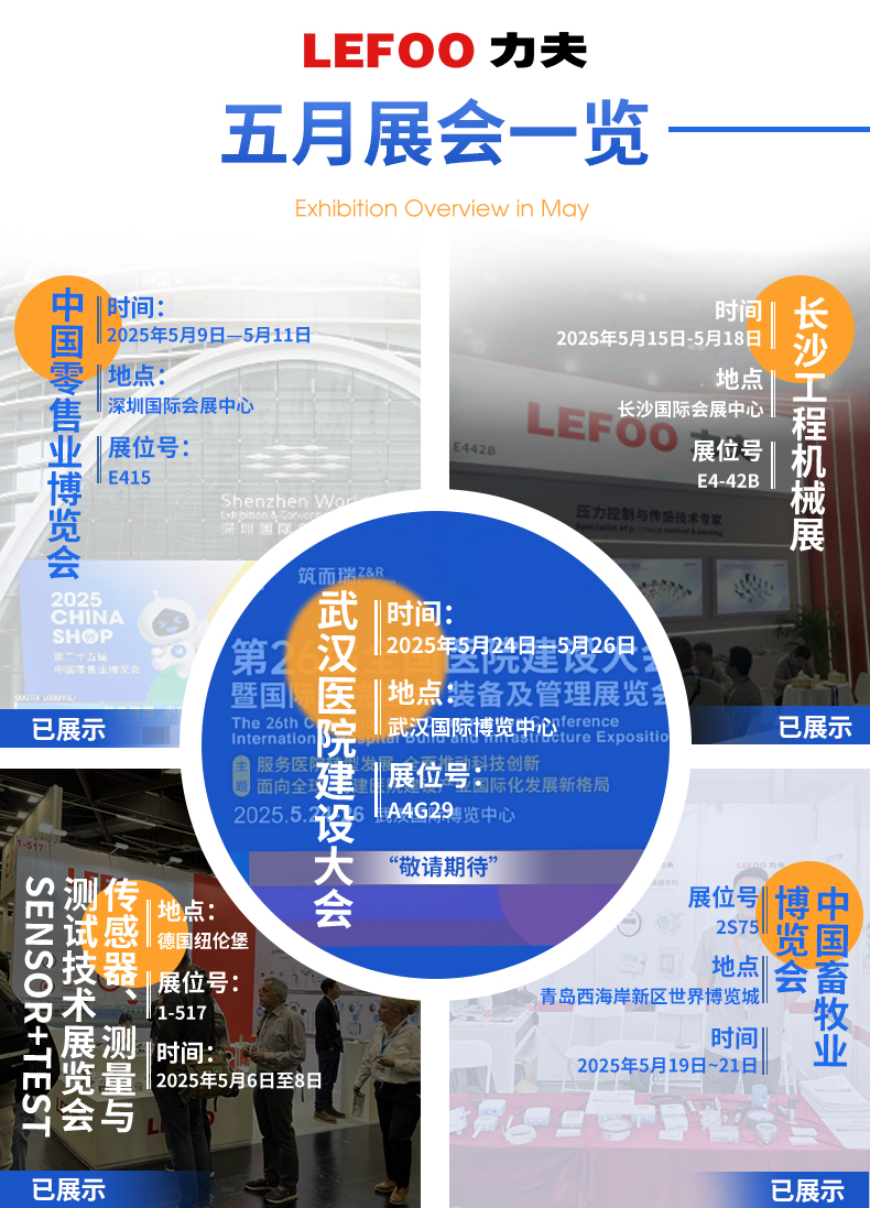 從德國紐倫堡傳感器、測(cè)量與測(cè)試技術(shù)展覽會(huì)(5.6-8,展位1-517)到深圳零售博覽會(huì)(5.9-11,E415)的智能零售解決方案展示;從長沙工程機(jī)械展(5.15-18,E4-42B)的工業(yè)傳感技術(shù)交流,到青島畜牧展(5.19-21,2S75)的智慧農(nóng)業(yè)應(yīng)用落地;最終聚焦武漢醫(yī)院建設(shè)大會(huì)(5.24-26,A4G29),力夫與您相約武漢醫(yī)院建設(shè)大會(huì),共筑行業(yè)新生態(tài)!