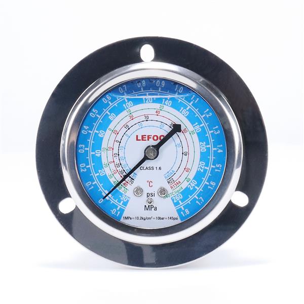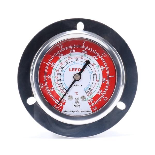 LFOPG冷煤用充油壓力表是內(nèi)部充油的制冷專用的抗振壓力表。充油壓力表用于冷凍、冷藏和空氣調(diào)節(jié)裝置的機組上。充油壓力表由多種制冷劑共組一表,方便使用。充油壓力表使用全不銹鋼表殼、超寬鍍青銅彈簧管。充油壓力表為帶法蘭安裝邊的軸向壓力表。
